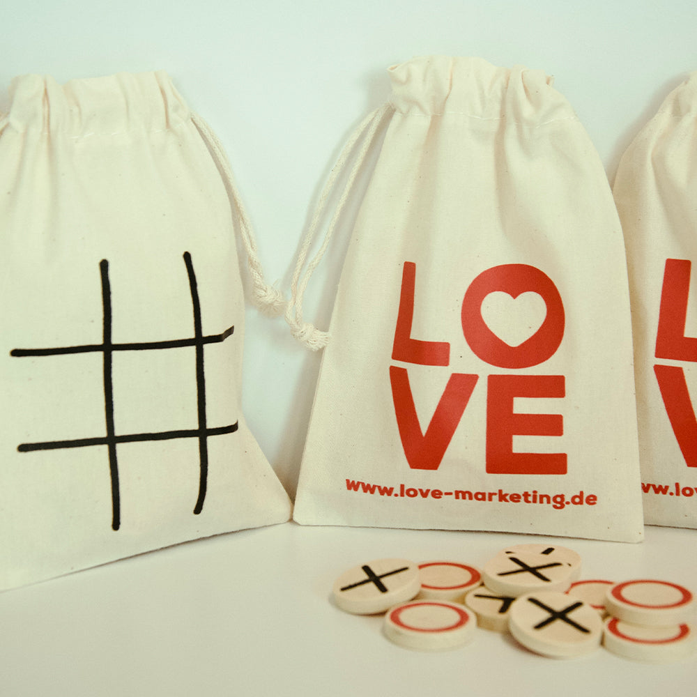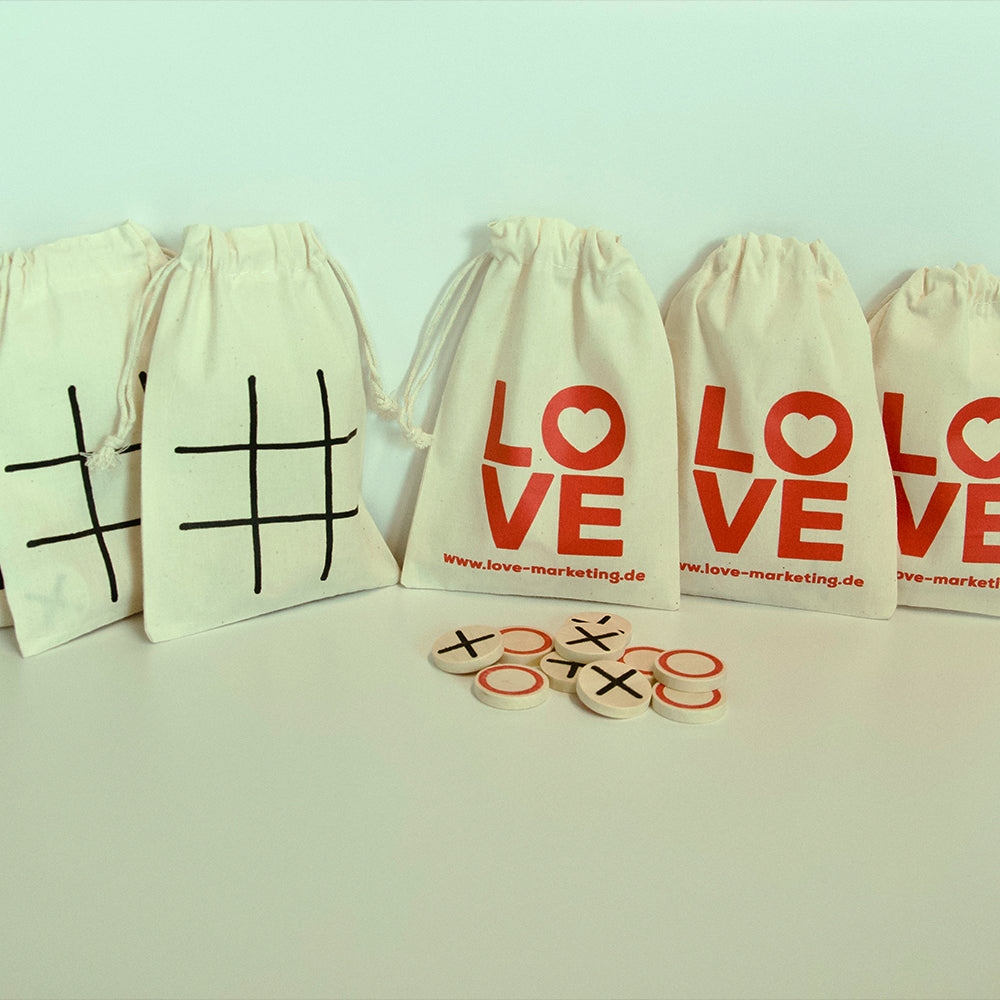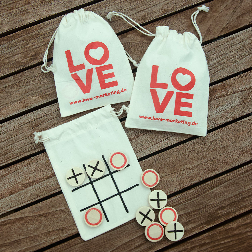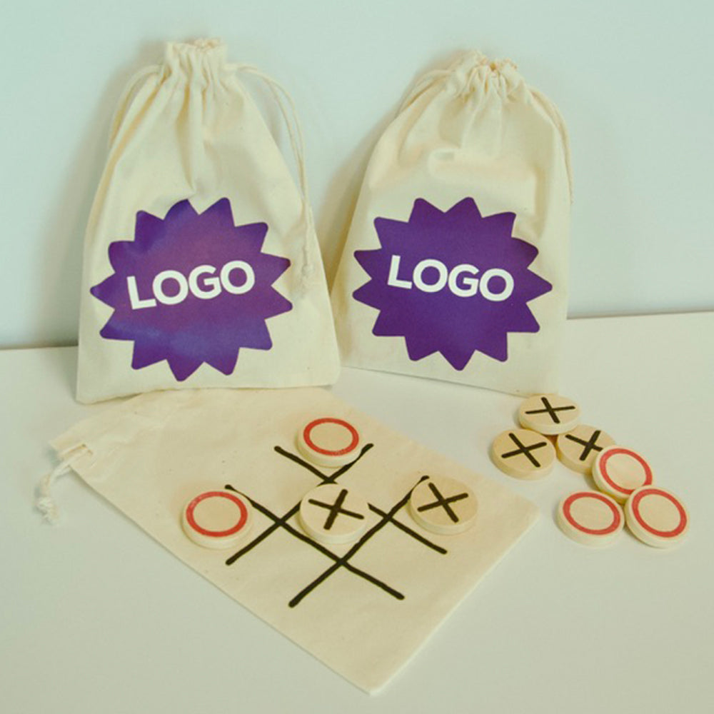 Dieses handliche TicTacToe-Spiel ist der perfekte Werbeartikel für kreative Markenbotschaften und nachhaltige Werbung. Das Set besteht aus einer hochwertigen Baumwolltasche, die nicht nur als Aufbewahrung dient, sondern auf der Rückseite ein aufgedrucktes TicTacToe-Spielfeld (9er Raster) bietet. Die Spielsteine sind aus robustem Holz gefertigt und sorgen für ein angenehmes Spielgefühl.