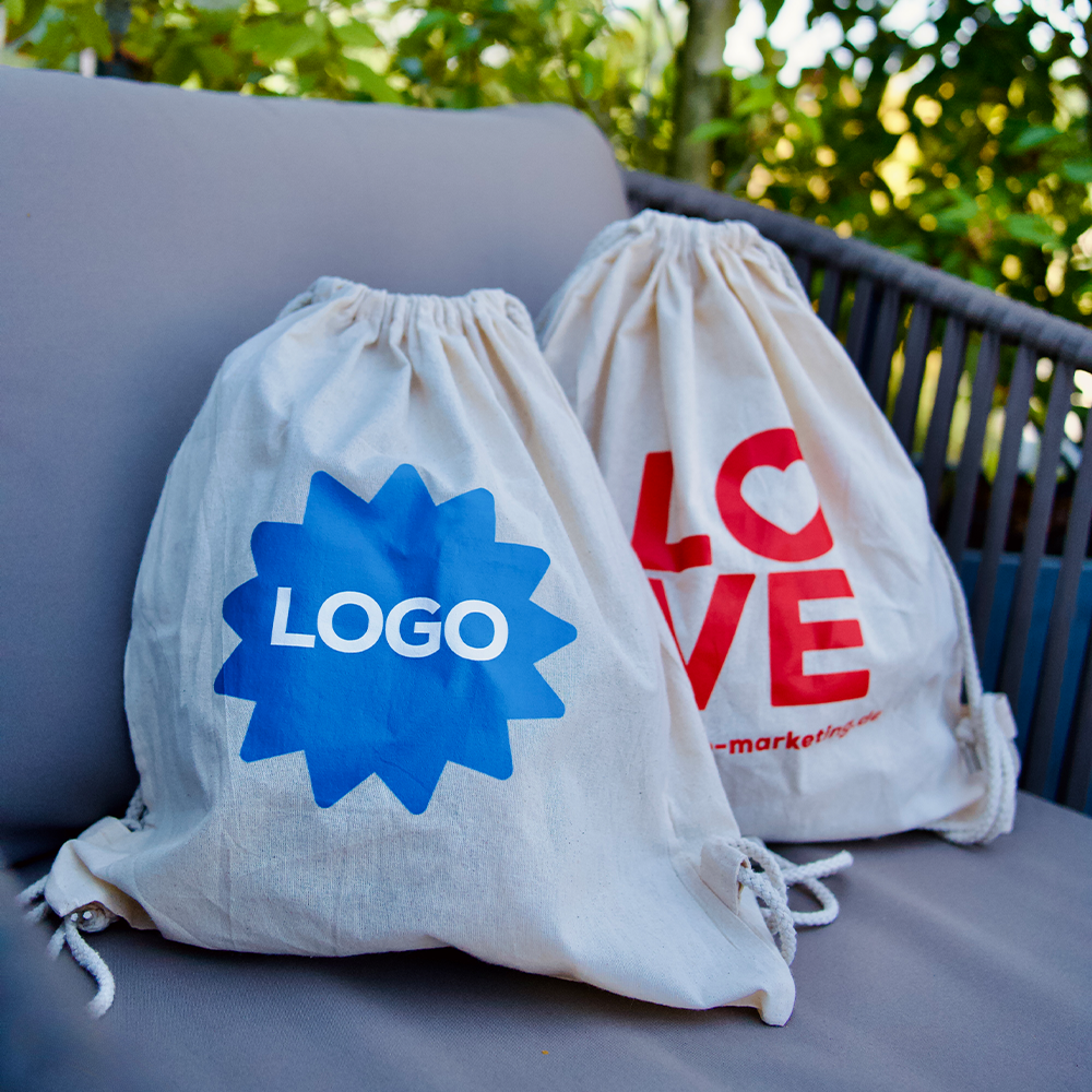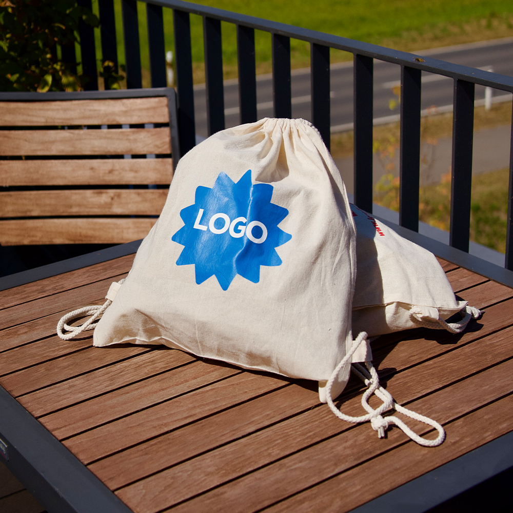 In der Mitte des Beutels befindet sich ein individueller Druckbereich von 17 x 17 cm, auf dem dein Logo oder Wunschmotiv hochwertig platziert wird. So wird jeder Turnbeutel zu einem echten Hingucker und gleichzeitig zu einem effektiven Werbeträger für deine Marke.